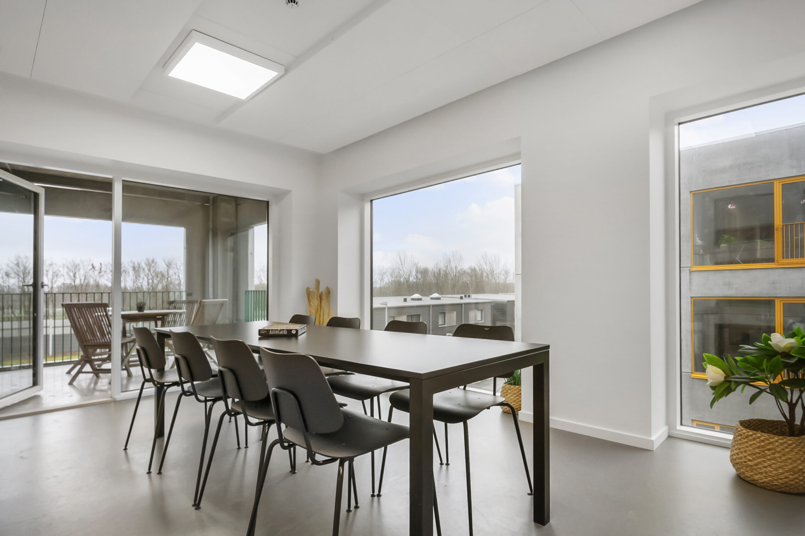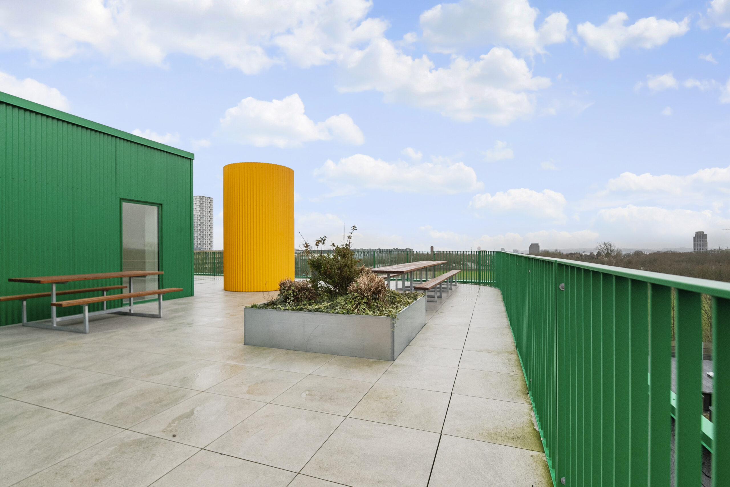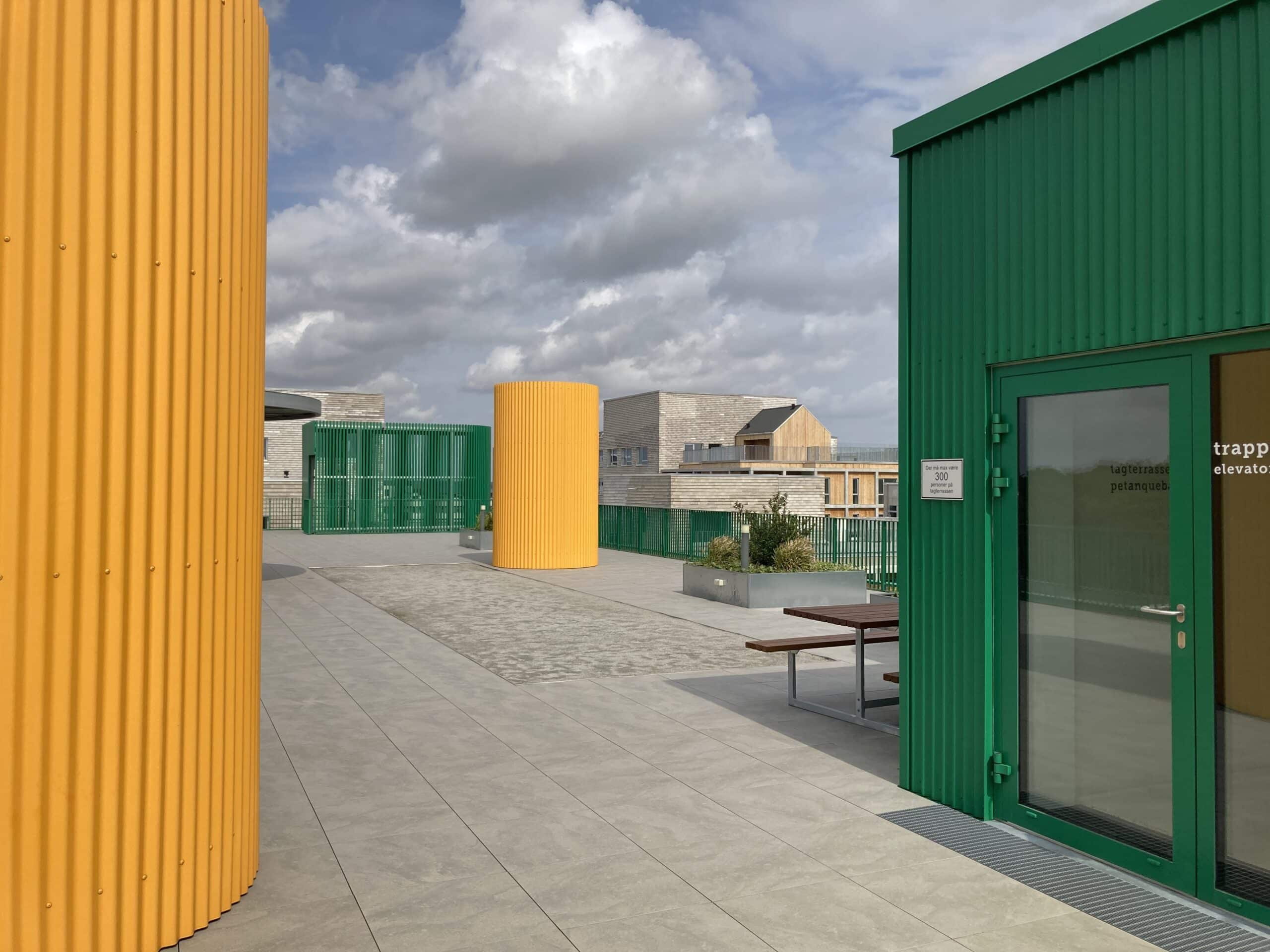 Blækhus Aarhus tilbyder mere end blot moderne boliger – her får du adgang til en række gennemtænkte fællesfaciliteter, der skaber rammerne for både fællesskab og fordybelse. I bygningen finder du ti fællesrum, hver med tilhørende altan, som er ideelle til både studiegrupper, afslapning og sociale aktiviteter. Øverst i bygningen ligger en rummelig tagterrasse med petanquebane og en betagende udsigt over Aarhus – perfekt til solrige dage og hyggelige aftener.