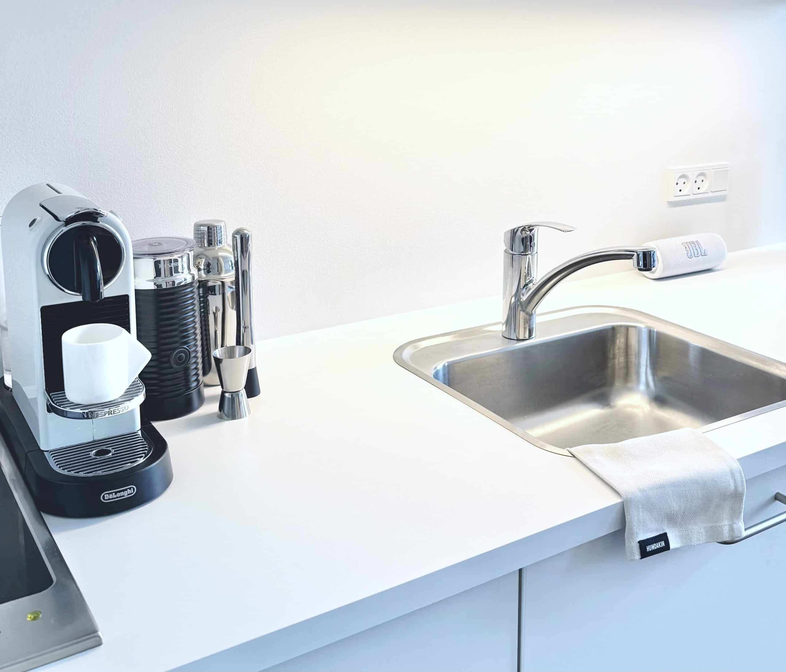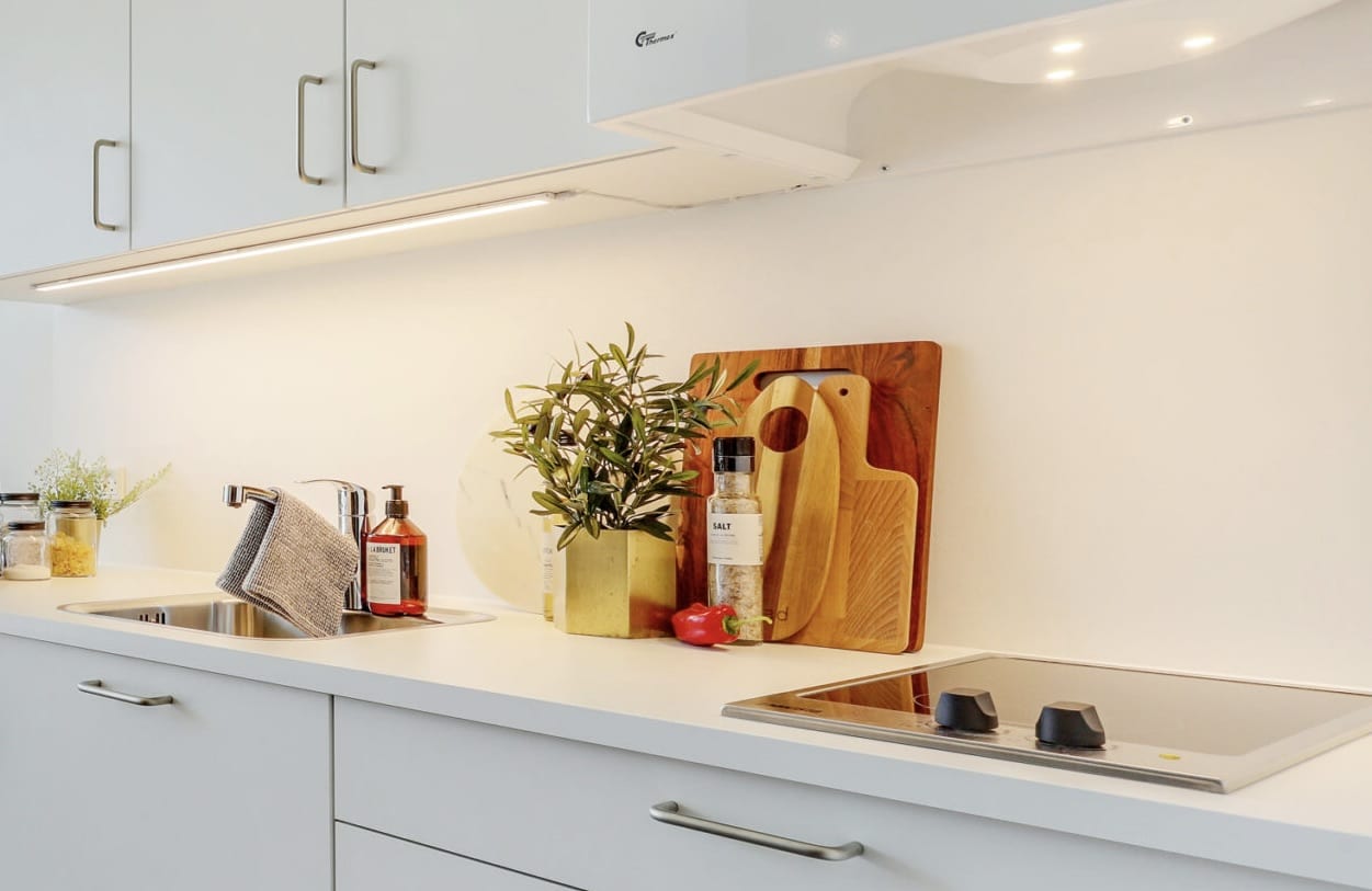 Midt i samlingspunktet ligger et stort og moderne fælleskøkken – perfekt til fælles madlavning, spontane middagsselskaber og hyggelige hverdagsmåltider i selskab med dine medbeboere.