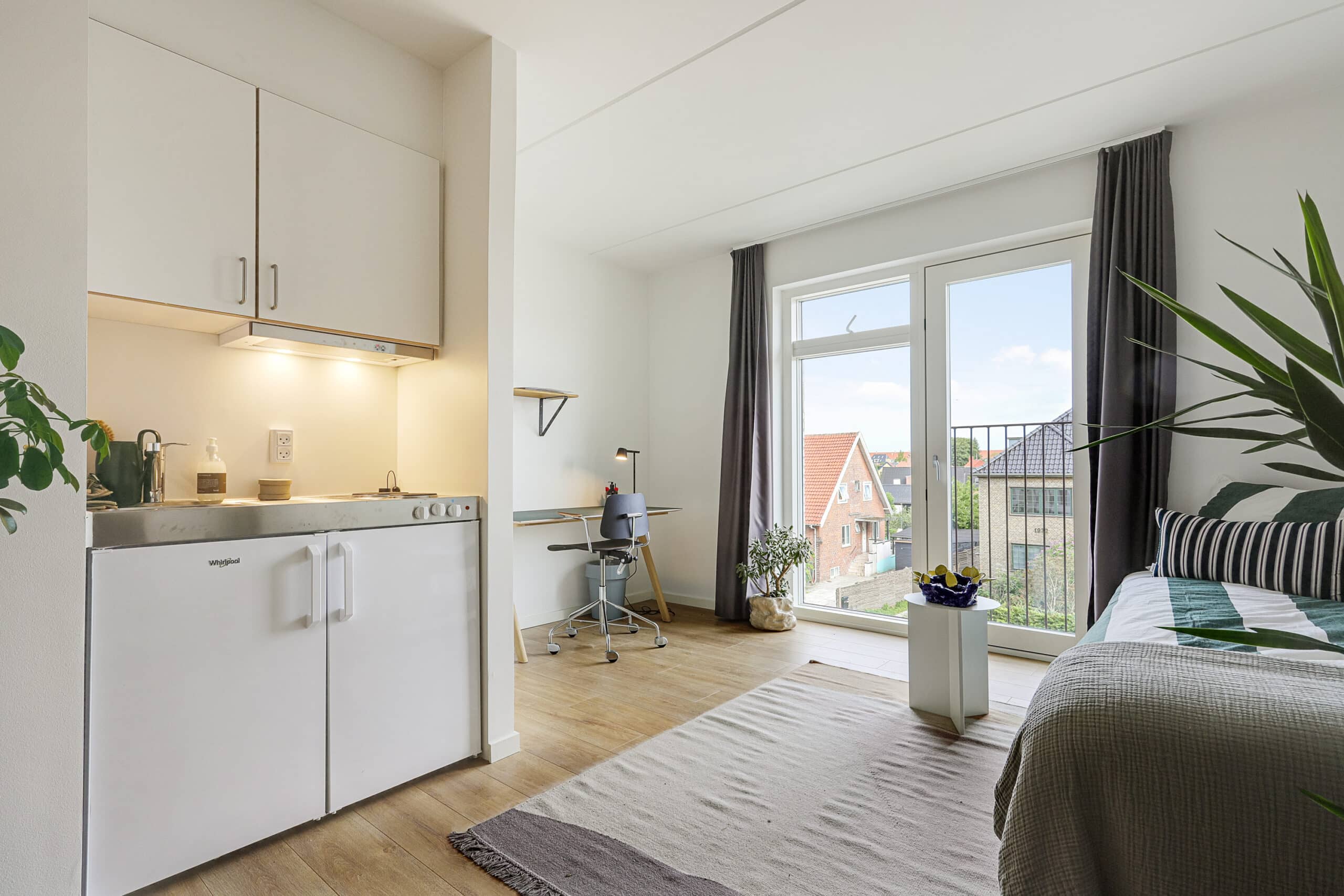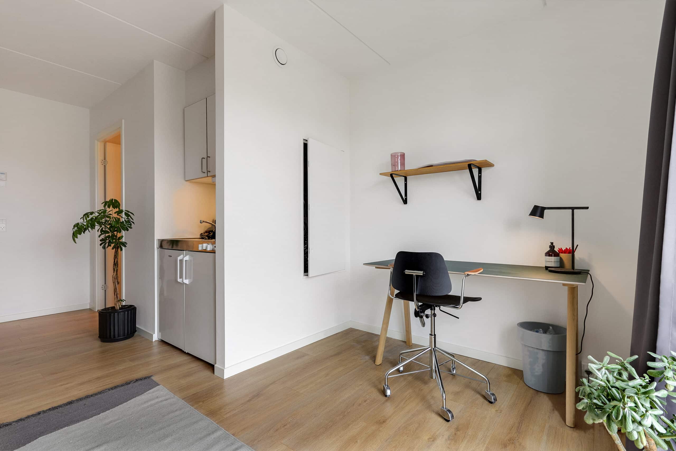 Blækhus Vanløse består af lyse og indbydende 1-værelses lejligheder på 30–40 m² – alle med eget tekøkken og badeværelse. Du får adgang til velindrettede fællesområder, som understøtter både hygge, studie og fællesskab, og der arrangeres løbende aktiviteter for beboerne. Afdelingen ligger mindre end 250 m fra Vanløse Station, og tæt på CBS, IT-Universitetet og Københavns Universitet. Perfekt for dig, der ønsker en nem hverdag i grønne og bynære omgivelser.