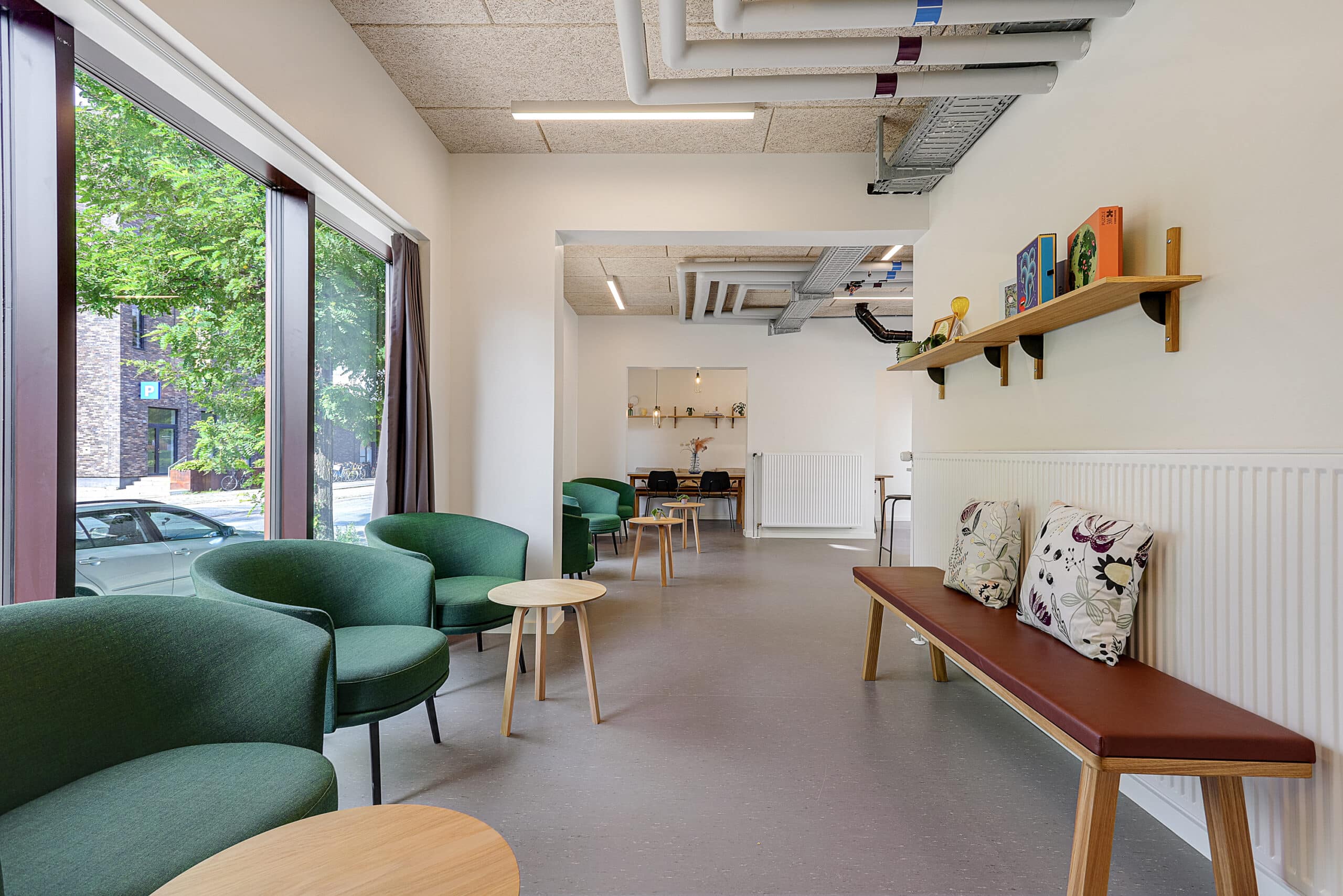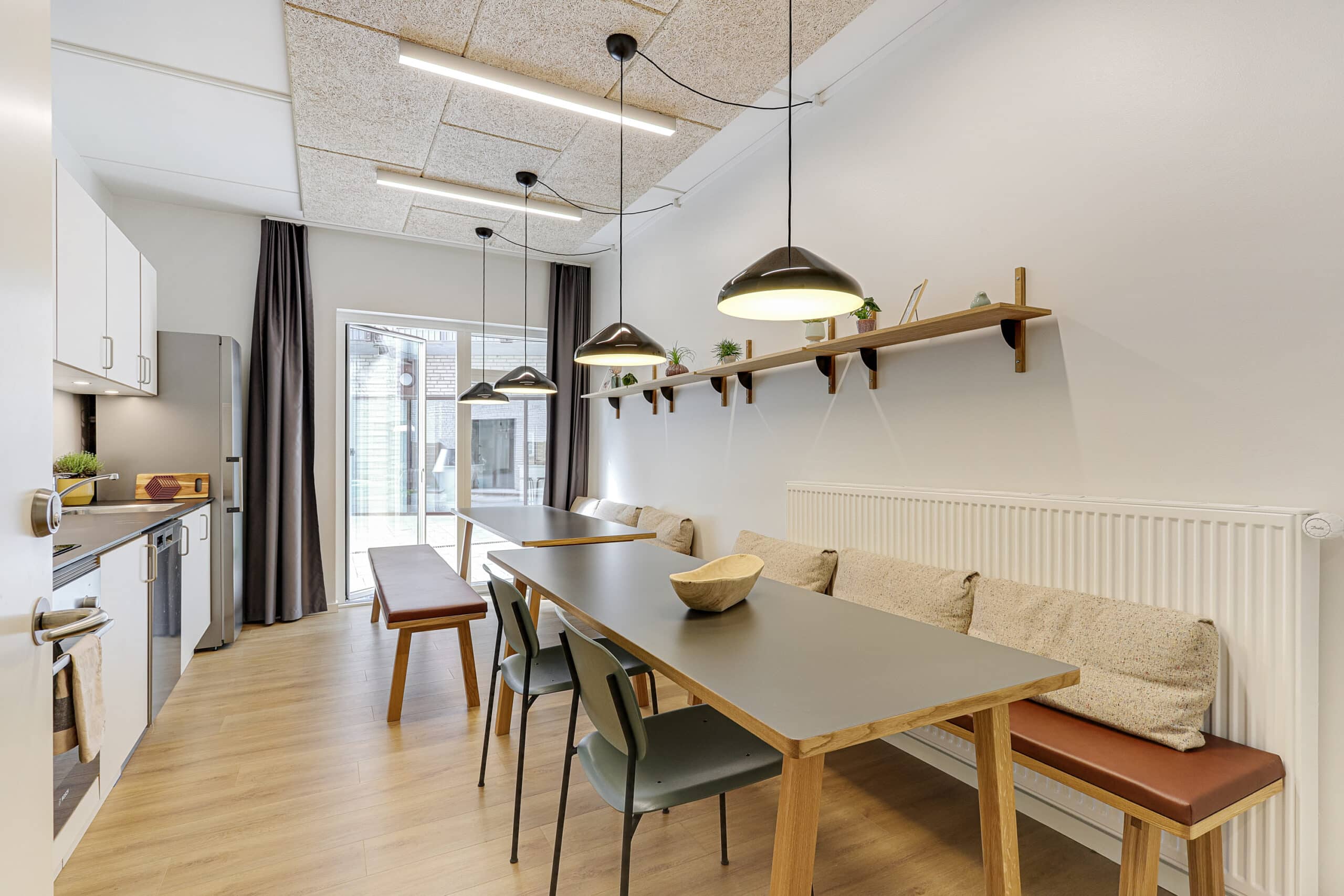 Når du har brug for ro eller fokus, kan du benytte de åbne lounge- og arbejdsområder, der er ideelle til både læsning, hjemmearbejde og afslapning. I stueetagen ligger et centralt fælleslokale, hvor der jævnligt arrangeres sociale aktiviteter, filmaftener og fællesspisning – et sted, hvor nye venskaber opstår naturligt.
